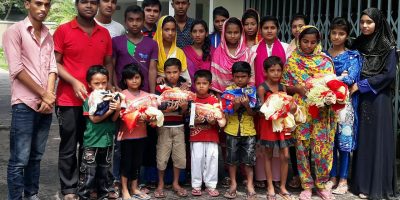 বরিশাল নগরীর একশত পথ শিশুর মুখে হাসি ফোটানোর প্রচেষ্টায় নগরীর কিছু উদ্যোমি তরুন ব্যাতিক্রমী উদ্যোগ নিয়ে কাজ শুরু করেছিল রমজান মাসের শুরুর দিকেই। লক্ষ্য ছিল ঈদের আগেই একশত পথশিশুদের মাঝে ঈদ বস্র তুলে দিয়ে ঈদের আনন্দ ভাগাভাগি করে নেয়া।তাই নগরীর বিভিন্ন প্রান্তে ঘুরে ঘুরে অর্থ সংগ্রহ করে জমা করতে শুরু উদ্যোমী এই তরুনরা। রবিবার সকাল ১১টায় বরিশাল পলিটেনিক ইনস্টিটিউ ক্যাম্পাসে আনুষ্ঠানিকতার মধ্যে দিয়ে একশত পথশিশুর হাতে ঈদের নতুন পোশাক তুলে দেয় তারা।
