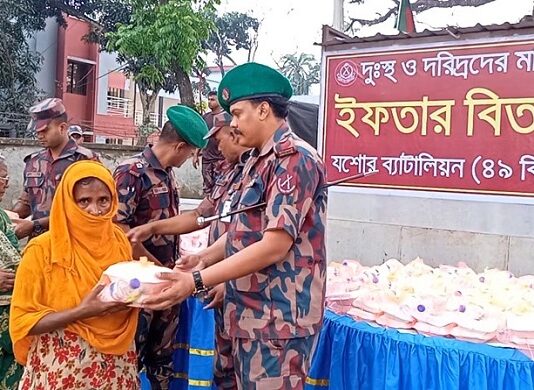মহান স্বাধীনতা দিবস ও পবিত্র রমজান মাস উপলক্ষে যশোরের বেনাপোলে দুস্থ ও অসহায়দের মধ্যে ইফতার সামগ্রী বিতরণ করেছে বর্ডার গার্ড বাংলাদেশ (বিজিবি)। রোববার (২৬ মার্চ) সন্ধ্যায় বেনাপোল বিজিবি ক্যাম্পের সামনে…