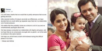 ফেসবুকে তিনি লিখেন – ভারাক্রান্ত হৃদয় নিয়ে আমরা ঘোষণা করছি যে, খুব শিগগিরই আনুষ্ঠানিক ডিভোর্সে যাচ্ছি আমরা। আমাদের মধ্যে যে মতপার্থক্যগুলো তৈরি হয়েছে গত কয়েকমাস ধরে আমরা সেগুলো দূর করার চেষ্টা চালিয়েছিলাম। এরপরেই আমরা সিদ্ধান্ত নিয়েছি, সামাজিক চাপে পড়ে সম্পর্কে থাকার চেয়ে বিচ্ছেদই ভালো।