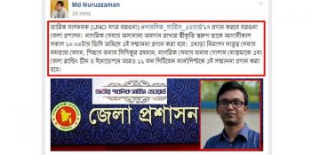শনিবার বিকেল সাড়ে ৩টার দিকে ফেসবুকে বরগুনা জেলা প্রশাসন পরিচালিত ‘সিটিজেনস ভয়েস বরগুনা’ নামক গ্রুপে এক পোস্টের মাধ্যমে এ তথ্য জানিয়েছেন। বিষয়টি নিশ্চিত করেছেন বরগুনার অতিরিক্ত জেলা প্রশাসক মো. নুরুজ্জামান।