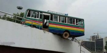 তবে শেষ পর্যন্ত অল্পের জন্য রক্ষা পেয়েছেন বাসটিতে থাকা ২৬ হজযাত্রী। রেলিং ভেঙে বাসটি পড়ে গেলে ১৫ ফুট নিচে পড়ে যেত। সোমবার দুপুরে এ ঘটনা ঘটে।