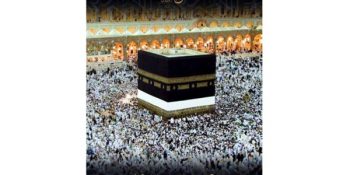 ডাকটিকিটে পবিত্র কাবা ঘিরে হাজীদের দেখা যাচ্ছে।