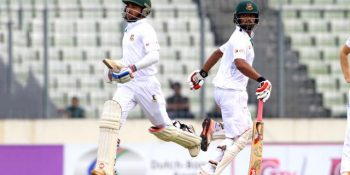 তামিম ইকবাল যখন ব্যাটিং করতে নেমেছেন ততক্ষণে দলের স্কোর হয়ে গেছে ৩ উইকেটে ১০৩। আন্তর্জাতিক ক্রিকেটে প্রথমবারের মতো মিডল অর্ডারে ব্যাটিং করতে নেমেছেন তামিম। দলের ব্যাটিং বিপর্যয়ে নামার অভিজ্ঞতাও তাঁর প্রথম। আজ সেটি সামাল দেওয়ার কাজটা খারাপও করেননি। তামিমের অপরাজিত ২২ আর মুমিনুল হকের ২৮ রান আশা দিচ্ছে বাংলাদেশকে। দিন শেষে বাংলাদেশের রান ৩৪ ওভার শেষে ৩ উইকেট হারিয়ে ১২৭। বাংলাদেশ পিছিয়ে রয়েছে এখনও ৩৬৯ রান।