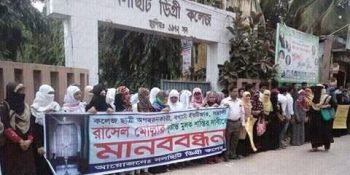 সভায় বক্তারা বলেন আমাদের কলেজের এক ছাত্রীকে গত ১৯ সেপ্টেম্বর কলেজে পরীক্ষা দিতে আসার সময় রাসেল মোল্লা ও তার দলবল নিয়ে জোরপূর্বক অপহরন করার চেষ্টা চালায় এ সময় স্থানীয় জনতা তাকে গনধোলাই দিয়ে প্রশাষনের কাছে হস্তান্তর করে কিন্তুু তার সহযোগিরা পালিয়ে যায়।এছাড়াও গত ১২ অক্টোবর ২০১৪ ইং তারিখ তার পিতাকে শিকল দিয়ে বেধে রড দিয়ে মেরে রক্তাক্ত করা এবং সন্ত্রাস, ইভটিজিং,মাদকসেবনসহ বিভিন্ন অপরাধের সাথে তার জড়িত থাকার অভিযোগ রয়েছে। বর্তমানে সে জেল হাজতে পুলিশ প্রহরায় চিকিৎষাধীন আছে কিন্তুু তার সাঙ্গপাঙ্গরা এখনো প্রাকাশ্যে ঘুড়ে বেড়াচ্ছে । বক্তারা তার সহযোগীদের গ্রেফতারের পাশাপাশি বখাটে রাসেলের দৃষ্টান্তমূলক শাস্তি দাবি করেন । তারা মামলাটিকে দ্রুত বিচার আইনের আওতায় নিয়ে সংক্ষিপ্ত সময়ের মাধ্যে চার্জশিট দিয়ে দৃষ্টান্তমূলক শাস্তির প্রদানের মাধ্যমে শিক্ষার্থীদের শিক্ষা জীবনকে কলংক মুক্ত করার জন্য প্রশাসনের কাছে দাবি জানান। তারা আরো বলেন বখাটে রাসেল মোল্লার উপযুক্ত শাস্তি না হওয়া পর্যন্ত আমাদের আন্দোলন অব্যাহত থাকবে।