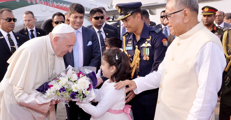 বৌদ্ধ সংখ্যাগরিষ্ঠ মিয়ানমার সফরে দেশটির ক্যাথলিক খ্রিষ্টানদের এক উন্মুক্ত সমাবেশে রোহিঙ্গা শব্দটি এমনকি রাখাইন সঙ্কটের ব্যাপারে কোনো কথা বলেননি। গত আগস্টের পর রাখাইন থেকে প্রায় ৬ লাখ ২০ হাজারের বেশি রোহিঙ্গা বাংলাদেশে ঢুকে পড়েছে।