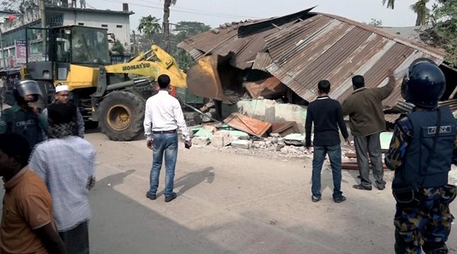 বরিশাল নগরীর ১২ নম্বর ওয়ার্ডের ত্রিশ গোডাউন সড়কের পাশের অবৈধ স্থাপনা উচ্ছেদ করেছে সিটি করপোরেশন। মঙ্গলবার দুপুরে সিটি করপোরেশনের নির্বাহী ম্যাজিস্ট্রেট ইমতিয়াজ আহম্মেদ জুয়েলের নেতৃত্বে আর্মড পুলিশ ব্যাটালিয়ন এবং কোতয়ালী মডেল থানা পুলিশের সহায়তায় এই অভিযান পরিচালিত হয়। এসময় রাস্তার দুই পাশে থাকা অর্ধশতাধিক অবৈধ স্থাপনা উচ্ছেদ করা হয়।