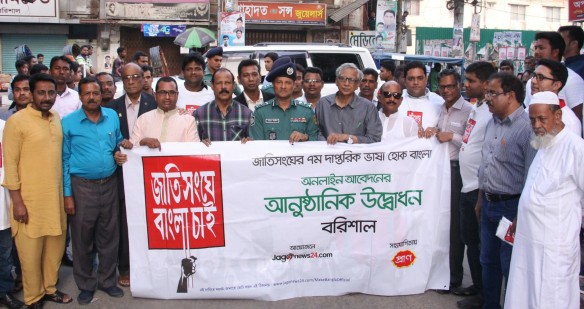 বাংলাকে জাতিসংঘের দাপ্তরিক ভাষা হিসেবে স্বীকৃতির জন্য দেশের শীর্ষস্থানীয় অনলাইন নিউজ পোর্টাল জাগোনিউজ২৪.কম ‘জাতিসংঘে বাংলা চাই’ কর্মসূচির বরিশালে উদ্বোধন হয়েছে। বুধবার বিকেল ৫টার দিকে নগরীর আগরপুর রোড শহীদ আব্দুর রব সেরনিয়াবাত বরিশাল প্রেস ক্লাবে অনলাইন আবেদন কর্মসূচির উদ্বোধন করেন বরিশাল মেট্রোপলিটন পুলিশ কমিশনার এস এম রুহুল আমিন। অনুষ্ঠানের শুরুতে এ কার্যক্রমের যুক্তিকতা তুলে ধরে স্বাগত বক্তব্য রাখেন, জাগোনিউজ২৪.কম-এর নিজস্ব প্রতিবেদক সাইফ আমীন।