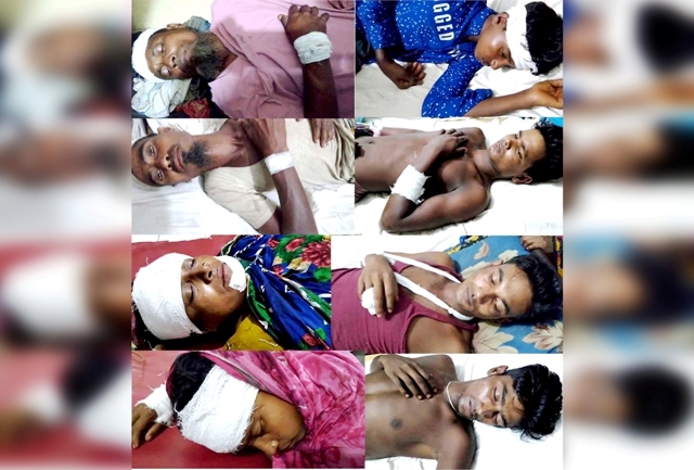 এসময় এলাকাবাসী প্রতিবাদ করলে কথিত সন্ত্রাসীরা লাঠিসোটা নিয়ে গ্রামবাসীর উপরেও হামলা চালায়। এতে রাব্বানা (৪৫), সবুজ বেপারী (৫০), আরজু (৩০), রাসেল (২৬), সজীব (২২), সোহেল (২০), শাহজাহান হাওলাদার (৮০), হাচান (১৫), সুমন হোসেন (২৭) সহ ১৬ জন গুরুতর জখম হয়। স্থানীয়রা আহতদের উদ্ধার করে উপজেলা স্বাস্থ্য কমপ্লেক্সে নিয়ে আসলে এদের মধ্যে ৩ জনের অবস্থা আশংকাজনক হওয়ায় তাদেরকে বরিশাল শেবাচিম হাসপাতালে প্রেরণ করা হয়।
