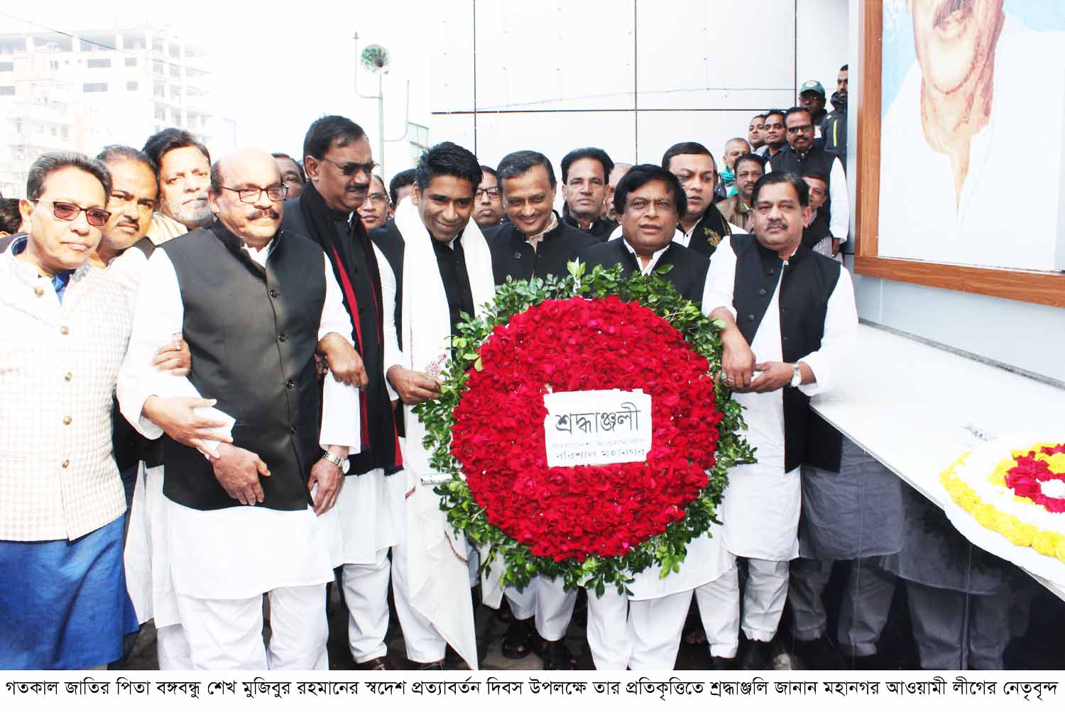 জাতীর পিতা বঙ্গবন্ধু শেখ মুজিবুর রহমানের স্বদেশ প্রত্যাবর্তন দিবস উপলক্ষ্যে তার প্রতিকৃতিতে ফুলের শ্রদ্ধা নিবেদন করেছে বরিশাল আওয়ামী লীগ এবং এর অঙ্গ ও সহযোগী সংগঠন।