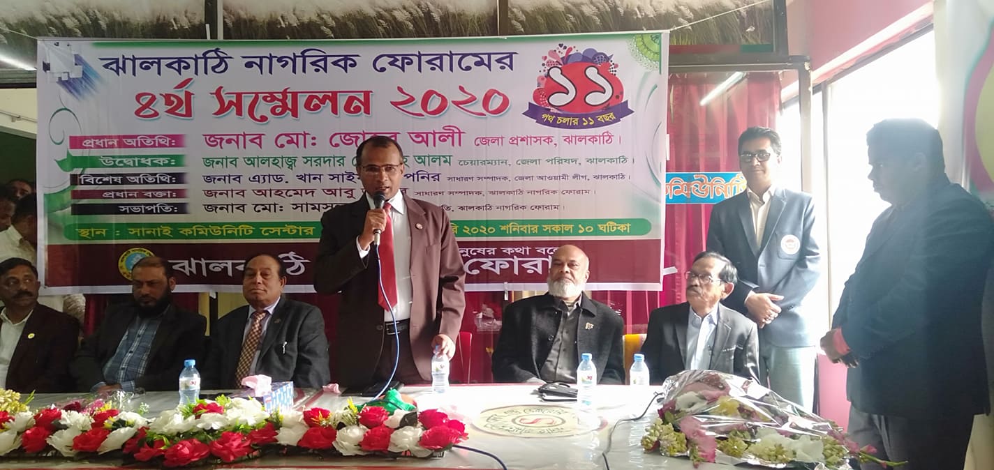 ঝালকাঠি নাগরিক ফোরামের ৪র্থ সম্মেলন শনিবার সকালে অনুষ্ঠিত হয়েছে। স্থানীয় একটি কমিউনিটি সেন্টারে অনুষ্ঠিত এ সম্মেলনে প্রধান অতিথি ছিলেন জেলা প্রশাসক মো. জোহর আলী। উদ্বোধন করেন জেলা পরিষদের চেয়ারম্যান সরদার মো. শাহ আলম।