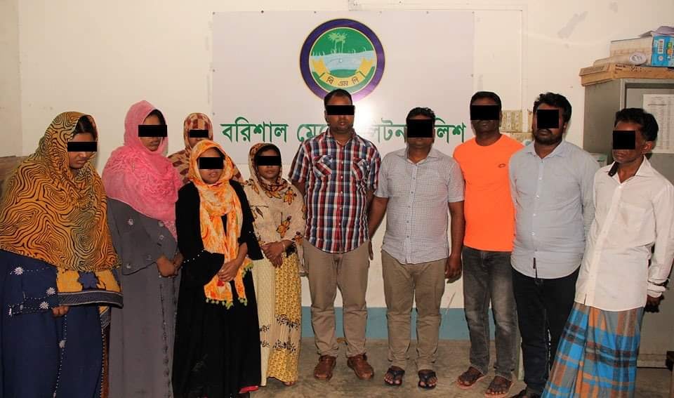 আটককৃতরা হলো- কাউনিয়া মহাশ্মশান সংলগ্ন সৈয়দ মঞ্জিলের ভাড়াটিয়া মকবুল হোসেন ও তার স্ত্রী লিজা বেগম, ফকির বাড়ি রোড চৌধুরী ভ্যালির বাসিন্দা আশার মা নামে পরিচিত খুশি বেগম, সরকারি বিএম কলেজের ব্যবস্থাপনা বিভাগের অনার্স চুড়ান্তে বর্ষের ছাত্রী ফারজানা বিনতে ঝুমুর, কালিবাড়ি রোড শ্রীনাথ চ্যাটার্জি লেনের বাসিন্দা জাকির হোসেন ও তার স্ত্রী মঞ্জুয়ারা মনি, কাউনিয়া প্রধান সড়কের বাসিন্দা সেলিম হাওলাদার ওরফে কসাই সেলিম, কাজিপুরের বাসিন্দা মামুন বয়াতী, সদর উপজেলার চরকাউয়া এলাকার বাসিন্দা আশা আক্তার ও ভুয়া সাংবাদিক পরিচয়ধারী মুরগি ব্যবসায়ী নগরীর চহটা এলাকার মো. আরিফুর রহমান তালুকদার,