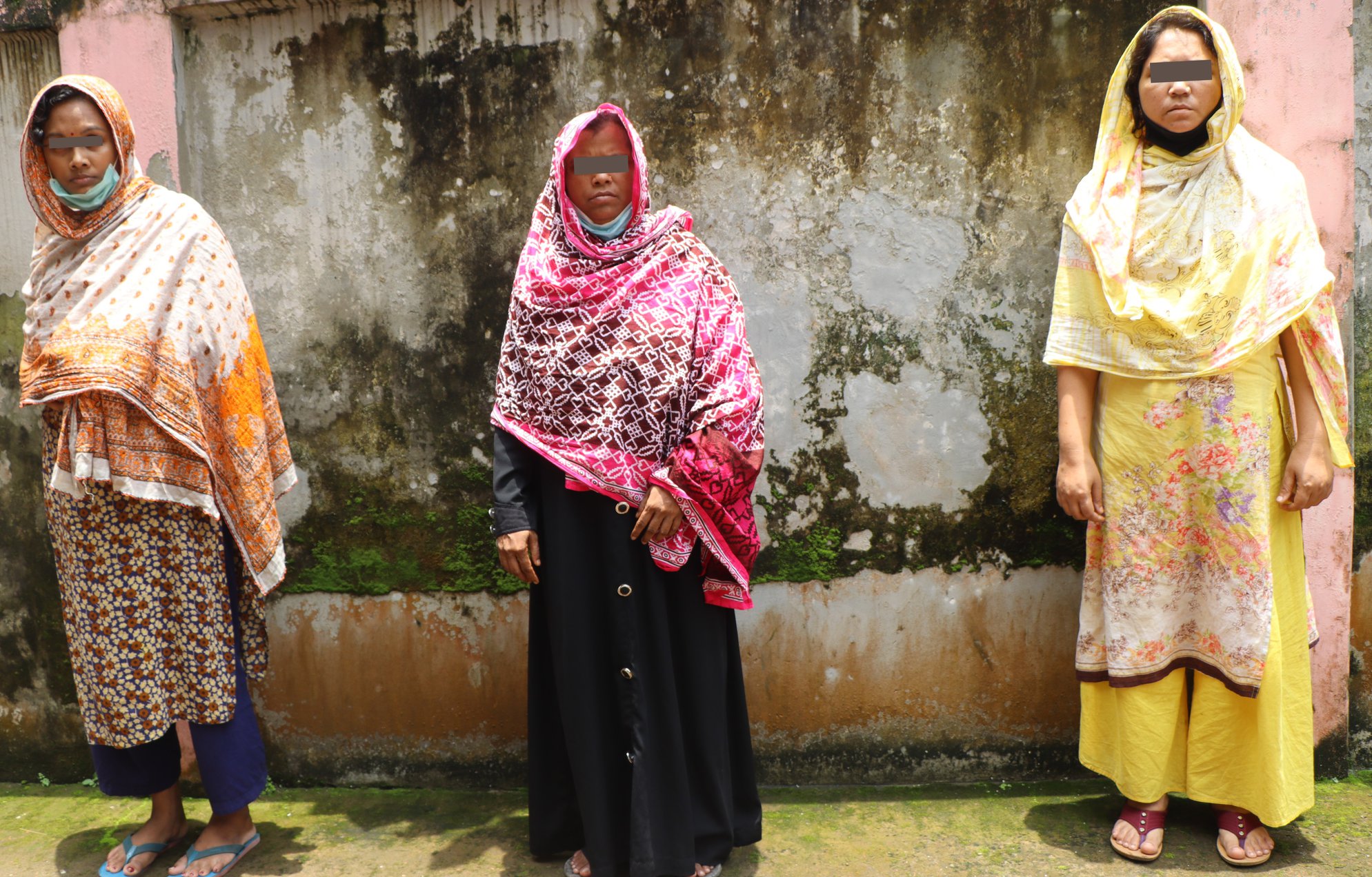 বিষয়টি থানা পুলিশ জানতে পারলেও কৌশলে অভিযান চালিয়ে তিন নারীকে আটক করে, তবে নাদিম নামের অপর যুবক পালিয়ে যায়।