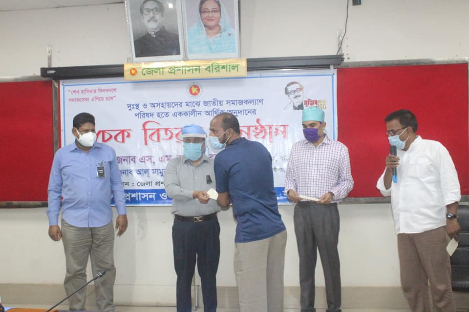 প্রাণঘাতী করোনা ভাইরাস প্রতিরোধে জেলা প্রশাসন বরিশাল এর পক্ষ থেকে এরিমধ্যে নানা কর্মসূচি হাতে নিয়েছে প্রশাসন তারি ধারাবাহিকতায় মাননীয় প্রধানমন্ত্রী শেখ হাসিনার পক্ষ থেকে করোনায় কর্মহীন হয়ে পড়া খেলোয়ারদের মাঝে আর্থিক সহায়তা প্রদান করেন জেলা প্রশাসক বরিশাল এস, এম, অজিয়র রহমান। আজ ১২ আগস্ট বুধবার দুপুর ১২ টার দিকে জেলা প্রশাসকের কার্যালয় সম্মেলন কক্ষে জাতীয় সমাজকল্যাণ পরিষদ এর পক্ষ থেকে করোনা ভাইরাস প্রাদুর্ভাবে কর্মহীন হয়ে পড়া ১২ জন কর্মহীন খেলোয়াড়দের মাঝে ২৪ হাজার টাকার চেক বিতরণ করেন জেলা প্রশাসক বরিশাল।