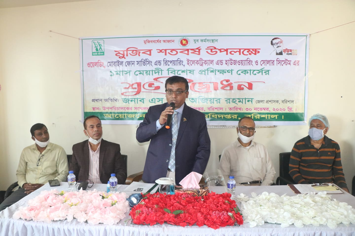 মোঃ শাহাজাদা হিরা:: ৩০ নভেম্বর সোমবার দুপুর দেড়টার দিকে যুব উন্নয়ন অধিদপ্তর বরিশাল এর আয়োজনে যুব উন্নয়ন অধিদপ্তর বরিশাল এর উপ-পরিচালকের কার্যালয়ের সম্মেলন কক্ষে মুজিব শতবার্ষি উপলক্ষে মোবাইল সার্ভিসিং ইলেকট্রনিক এন্ড হাউস ওয়্যারিং ও সেলার সিস্টেম প্রশিক্ষণ এর শুভ উদ্বোধন করেন প্রধান অতিথি জেলা প্রশাসক বরিশাল এস, এম, অজিয়র রহমান।