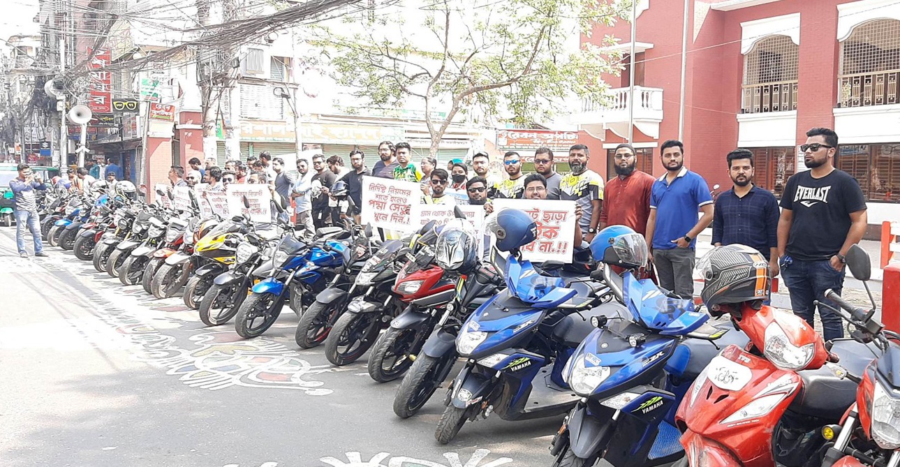 শুক্রবার দুপুরে নগরীর অশ্বিনী কুমার টাউন হলের সামনে দাবি আদায়ে মানববন্ধনের আয়োজন করেন বরিশাল বাইকিং কমিউনিটির নেতৃবৃন্দরা। এতে বরিশালের সর্বস্তরের বাইকার ও লেডি বাইকাররা অংশগ্রহণ করেন। মানববন্ধনে বাইকাররা অভিযোগ করেন শহরে মোটরসাইকেল ৩০ কিলোমিটারের বেশিগতিতে চালানো যাবেনা। মহাসড়কে ১২৬ সিসির নিচে ক্ষমতার মোটরসাইকেল চলাচল করতে পারবে না। মহাসড়কে আরোহী পরিবহন করা যাবেনা। ঈদ-পূজার আগে ও পরে ১০ দিন মহাসড়কে মোটরসাইকেল চলাচল করতে পারবে না। পরিবহন মালিকদের স্বার্থ রক্ষা করে এসব নীতিমালা গ্রহণযোগ্য নয়। তাই মনগড়া এসব নীতিমালা অবিলম্বে প্রত্যাহার করতে হবে। তারা আরও বলেন, সড়কে সাইকেল বা রিকশার গতি ঘণ্টায় ২০ থেকে ২৫ কিলোমিটার। সেখানে মোটরসাইকেলের মতো একটি বাহনের সর্বোচ্চ গতি ৩০ কিলোমিটার কখনই গ্রহণযোগ্য নয়। বর্তমান সরকারকে বির্তকিত করতেই সরকারের মধ্যে ঘাঁপটি মেরে থাকা একটি বিশেষ মহল এই মনগড়া নীতিমালার প্রস্তাব দিয়েছে। মানববন্ধনে অন্যান্যদের মধ্যে বক্তব্য রাখেন, বাইকার রফিকুল ইসলাম লাবু, দিলরুবা রেজা, জাহিদুল ইসলাম প্রমুখ