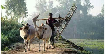 কঁধের উপরে লাঙ্গল তুলিয়া