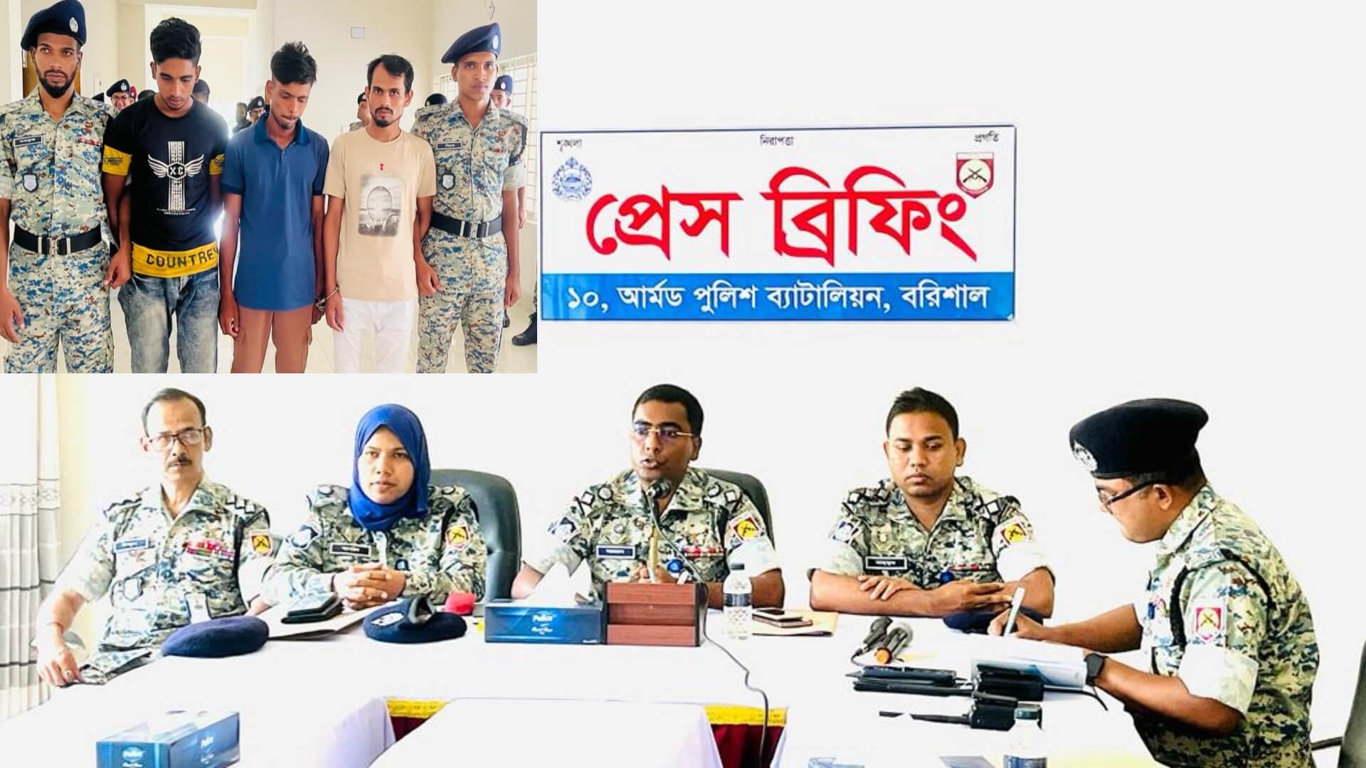 আজ সোমবার (২২ মে) সকাল ১১ টায় বরিশাল ১০ আর্মড পুলিশ ব্যাটালিয়নের কার্যালয়ে অনুষ্ঠিত সংবাদ সম্মেলনে এ তথ্য জানিয়েছেন ১০ আর্মড পুলিশ ব্যাটালিয়নের পুলিশ সুপার মোল্লা আজাদ হোসেন।
