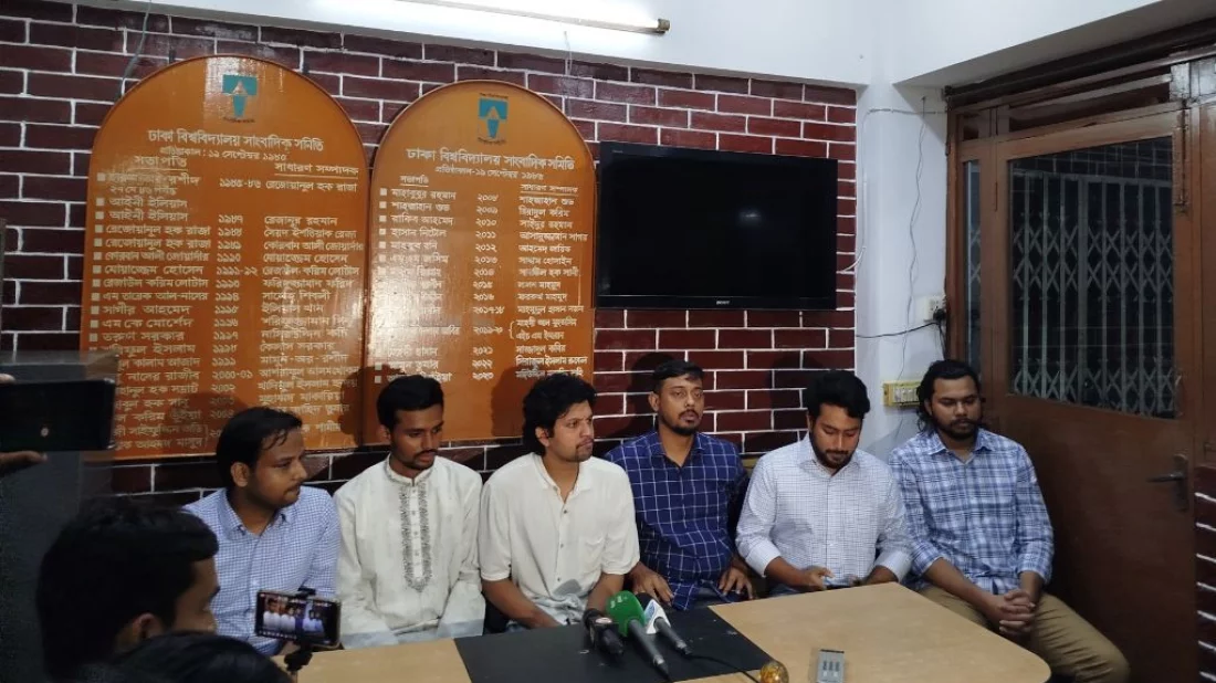 এ সময় সংবাদ সম্মেলনে আরও উপস্থিত ছিলেন নাসির আব্দুল্লাহ, আকরাম হুসাইন, আরিফুল ইসলাম আদীব, আসিফ মাহমুদুসহ অনেকে।