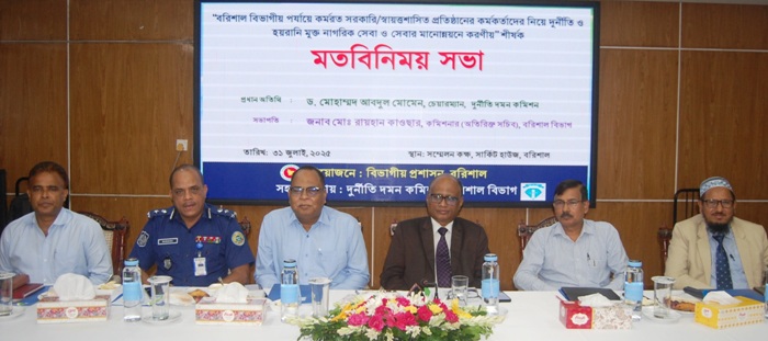 ৩১ জুলাই,বৃহস্পতিবার বরিশাল সার্কিট হাউজে বিভাগীয় পর্যায়ে সরকারি-স্বায়ত্তশাসিত প্রতিষ্ঠানের কর্মকর্তাদের নিয়ে দুর্নীতি ও হয়রানি মুক্ত নাগরিক সেবা এবং সেবার মানোন্নয়নে করণীয় শীর্ষক মতবিনিময়কালে এসব কথা বলেন তিনি।