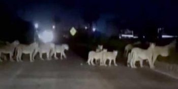 মহাসড়কে গাড়ি চালাচ্ছেন। রাস্তা ফাঁকা। সাঁই সাঁই করে ছুটে চলেছে গাড়ি। এ ধরনের পরিবেশে রাস্তায় অনেক কিছুই চোখে পড়তে পারে। গরু কিংবা ভেড়ার পাল, নয়তো ধীরে চলা কোনো হাতি। কিন্তু তাই বলে সিংহের দল!