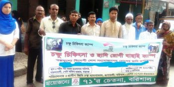 সুন্দর পৃথিবী, প্রকৃতি আর আপনজন আমাদের কতনা প্রিয়। সামান্য একটি রোগে এই প্রিয় সবকিছুই বয়স বাড়ার সাথে সাথে ঝাপসা হতে থাকে । এই রোগকে আমরা ছানি নামে চিনি। গ্রামের দরিদ্র জনগোষ্ঠীর অনেকে অশিক্ষা, অসচ্ছলতা ও সচেতনতার অভাবে চির তরে অন্ধত্ব বরন করে নেয় এই ছানির গ্রাসে। সম্প্রতি সেবার মহান ব্রতে উজ্জীবিত সংগঠন ‘৭১’র চেতনা’ উন্মোচন করলো সেবার এক নতুন দ্বারের। গ্রামীণ জিসি চক্ষু হাসপাতালের সহযোগীতায় ১৩ মে ২০১৭ ইং তারিখ , রোজ শনিবার বায়লাখালী, পোস্ট অফিস বাজার, বাবুগঞ্জ আ: সাত্তার হাওলাদার পাঠাগার মিলনায়তনে, চক্ষু রোগিদের জন্য বিনামূল্যে এবং সল্প মূল্যে চোখের ছানি অপারেশন এবং বিদেশি লেন্স সংযোজনসহ চক্ষু চিকিৎসা প্রদান করে ৭১’র চেতনা। শনিবার সকাল থেকে শত শত রোগীর সমাগম হতে থাকে । দিন ব্যাপী এই চক্ষু চিকিৎসা ক্যাম্পের আয়োজনে সাধারণ জনগণের ভেতর ইতিবাচক প্রভাব লক্ষ করা যায়। চোখের বিভিন্ন রোগে আক্রান্ত অনেকে স্বল্প ব্যয়ের এই সেবা পেয়ে আবেগ আপ্লূত হয়ে পড়ে। উপস্থিত সর্ব সাধারণ এই ধরনের কার্যক্রম চালিয়ে যাবার অনুরোধ জানান। এই চক্ষু চিকিৎসা প্রদান কার্যক্রমে উপস্থিত ছিলেন বিশ্ব সাহিত্যকেন্দ্র পাঠচক্র বরিশাল’র সমন্বয়কারী ড.বাহাউদ্দিন গোলাপ, ৭১’র চেতনা উপদেষ্টা মনিরুল ইসলাম, ৭১’র চেতনা, বরিশাল বিশ্ববিদ্যালয় কমিটির সভাপতি-পরাগ প্রলয়, মোঃ কামরুল হাসান, অর্থ-সম্পাদক বরিশাল বিশ্ববিদ্যালয়, মনিরা ইসলাম, ত্রাণ ও দুর্যোগ বিষয়ক সম্পাদক, বরিশাল বিশ্ববিদ্যালয়, মোঃ আমির হোসেন, যুগ্ম আহবায়ক বিএম কলেজ,মোঃ নজরুল ইসলাম, যুগ্ম সম্পাদক বিএম কলেজ। রুপা, সাংগঠনিক সম্পাদক, মহিলা কলেজ প্রমুখ সহ সংগঠনের অন্যান্য নেত্রীস্থানীয় ব্যক্তিবর্গ ও সাধারণ সদস্যবৃন্দ।