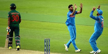 এদিন ইনিংসের দ্বিতীয় ও রুবেলের প্রথম ওভারের প্রথম বলেই বোল্ড হয়ে যান রোহিত শর্মা। অফ স্টাম্পের বাইরের বল রোহিতের (১) ব্যাটের কানায় লেগে ভেঙে দেয় উইকেট। ভারতের দলীয় রান তখন ৩। এরপর সপ্তম ওভারের প্রথম বলে মোস্তাফিজের শিকার হন অজিঙ্কা রাহানে। বোল্ড হয়ে ফেরার আগে তিনি করেছেন ১১ রান।