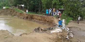 মৌলভীবাজার প্রতিনিধি : কুলাউড়া উপজেলার শরীফপুর ইউনিয়নের নিশ্চিন্তপুর এলাকায় বৃহস্পতিবার মধ্যরাতে ভেঙ্গে যায় মনু নদের প্রতিরক্ষা বাঁধ। লোকালয়ে প্রবেশ করতে শুরু করে পানি। এলাকার মানুষ বিষয়টি দেখে মসজিদের মাইকে ঘোষণা দেয়া হয়। আর তাতে সাড়া দিয়ে এগিয়ে আসে সর্বস্তরের গ্রামের মানুষ। সকলের সম্মিলিত প্রয়াসে রাতভর প্রাণান্ত-চেষ্ঠায় রোধ করা সম্ভব হয় সৃষ্ঠ ভাঙনের। আর তাতে রক্ষা পায় উপজেলার হাজীপুর ও শরীফপুর ইউনিয়নের কমপক্ষে ২০টি গ্রাম ব্যাপক ক্ষয়ক্ষতি থেকে।