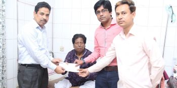 কণ্ঠযোদ্ধা আব্দুল জব্বারের হাতে চেক তুলে দেন ওয়ালটন গ্রুপের নির্বাহী পরিচালক (পলিসি, এইচআরএম এন্ড এডমিন) এসএম জাহিদ হাসান, ওয়ালটন গ্রুপের সিনিয়র ডেপুটি ডিরেক্টর (পিআর এন্ড মিডিয়া) মো. ফিরোজ আলম ও রাইজিংবিডির ফিচার সম্পাদক তাপস রায়।