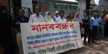 নিজেস্ব প্রতিবেদক: ২০১৭-১৮ বাজাটে ধোয়াঁবিহীন তামাকের কার্যকর কর বৃদ্ধি না করার প্রতিবাদে গতকাল জেলা প্রশাসকের কার্যালয়ের সম্মূখে বেলা ১১টায় তামাক বিরোধি নারী জোটের (তাবিনাজ) মানববন্ধন অনুষ্ঠিত হয়েছে। মানববন্ধনে প্যাকেট , কৌটার ওজন ও খুচরা মূল্যের ওপর নির্দিষ্ট কর আরোপের দাবি জানানো হয়। নারীর স্বাস্থ্য অধিকার আন্দোলন জোটের সভাপতি রনজিৎ দত্তের সভাপতিতে বক্তব্য দেন মুক্তিযোদ্ধা এএমজি কবির বুলু, জেলা পরিষদ সদস্য মনোয়ারুল ইসলাম ওলি, তাবিনাজের বরিশাল প্রতিনিধি কাওছার পারভীন। আরও বক্তব্য দেন ডিএমইউএসের নির্বাহী পরিচালক সাধনা ব্যাপারি, ওআরডিপির নির্বাহী পরিচালক জাকির হোসেন পান্নু, বিএমকেএসের সম্বনায়ক রফিকুল ইসলাম। বক্তারা সিগারেটের ক্ষেত্রে মূল্যস্তরভিত্তিক কর-প্রথা, বিড়ির ক্ষেত্রে ট্যারিফ ভ্যালু প্রথা বাতিল করে কার্যকরভাবে নির্দিষ্ট পরিমাণ স্পেসিফিক এক্সাইজ ট্যাক্স নির্ধারণ করার দাবি জানান। তারা আর দাবি জানান, গুল-জর্দার ক্ষেত্রে এক্স-ফ্যাক্টরি প্রথা প্রভৃতি বাতিল করে প্যাকেট, কৌটা ওজন ও সাইজ অনুযাযী কার্যকরভাবে নির্দিষ্ট পরিমাণ স্পেসিফিক এক্সাইজ ট্যাক্স নির্ধারণের। বিশেষ করে নারী স্বাস্থ্যের কথা বিবেচনায় রেখে এবারের বাজেটের সংশোধনীতে জর্দা ও গুলের খুচরা মূল্যের ওপর সুনির্দিষ্ট কর আরোপ করার দাবি জানায় তারা।