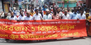 এসময় বক্তারা তাদের ৯ দফা দাবী তুলে ধরেন। দাবী সমূহের মধ্যে রয়েছে, ঈদ, পূজাসহ ধর্মীয় উৎসবের ১০ দিন পূর্বে শ্রমিক কর্মচারীরা যাতে বকেয়া বেতন-বোনাস পায় তার প্রয়োজনীয় ব্যবস্থা গ্রহণ করতে হবে। লঞ্চ, স্টীমার, বাস, রেলসহ যানবাহনের ভাড়া কমাতে হবে এবং পর্যাপ্ত যানবাহন চালু করতে হবে। দোকান কর্মচারীদের সাপ্তাহিক ছুটিসহ বছরে ৩৬ দিন আইনানুগ ছুটি এবং ন্যূনতম মজুরী ১৬ হাজার টাকা যাতে পায় তার কার্যকরী ব্যবস্থা গ্রহণ করতে হবে। জাতীয় মজুরী কমিশন ঘোষণা এবং আই.এল.ও কনভেনশন মোতাবেক অবাধ ট্রেড ইউনিয়ন অধিকার দিতে হবে। সাধারণ মানুষের প্রয়োজনীয় দ্রব্যের উপর চাপিয়ে দেয়া ভ্যাট প্রত্যাহার করতে হবে এবং বৈদেশিক ঋণের উপর নির্ভরশীল এই বাজেট দিয়ে জনদুর্ভোগ বন্ধ করতে হবে।
