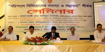 বরিশালে বিনিয়োগের সমস্যা ও সম্ভাবনা শীর্ষক সেমিনার অনুষ্ঠিত হয়েছে। বাংলাদেশ বিনিয়োগ উন্নয়ন কর্তৃপক্ষের উদ্যোগে এবং বরিশাল বিভাগীয় প্রশাসনের সহযোগিতায় আজ বিকেলে নগরীর অভিজাত আবাসিক হোটেল গ্রান্ড পার্কের বল রুমে এই সেমিনার অনুষ্ঠিত হয়। এতে প্রধান অতিথি ছিলেন, বিনিয়োগ উন্নয়ন কর্তৃপক্ষের নির্বাহী চেয়ারম্যান কাজী মো. আমিনুল ইসলাম।