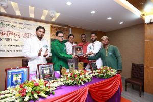 ছবিঃ সংবর্ধনা দিচ্ছে অরনেট গ্লোরি ইভেন্ট ম্যানেজমেন্ট।