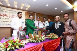 ছবিঃ সংবর্ধনা দিচ্ছে জিএম নিউজ বিডি ডট কম।