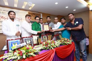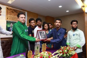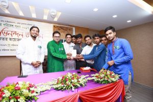 ছবিঃ সংবর্ধনা দিচ্ছে মেঘাবার্তা টিম ইউনিট।
