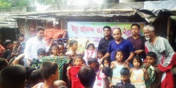 তেজগাঁও রেলস্টেশন বস্তির ছিন্নমূল শিশুদের মুখে হাসি ফোটাল স্বেচ্ছাসেবী সংগঠন ‘মিডিয়া মিউজিয়াম ইয়ুথ ক্লাব’। ঈদের প্রাক্কালে সংগঠনটির শীর্ষ কর্মকর্তারা অর্ধশতাধিক পথশিশুর হাতে নতুন জামা তুলে দিয়েছেন।