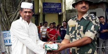 দিনাজপুরের হাকিমপুর হিলি সীমান্তে পবিত্র ঈদুল ফিতর উপলক্ষে বিজিবি-বিএসএফ মিষ্টি দিয়ে ঈদের শুভেচ্ছা বিনিময় করেছেন। সোমবার সকাল সাড়ে ১০টায় সীমান্তের ২৮৫নং মেইন পিলারের ১১নং সাব পিলারের নিকট ইমিগ্রেশন চেকপোস্ট গেটের শূন্য রেখায় উক্ত শুভেচ্ছা বিনিময় অনুষ্ঠিত হয়।