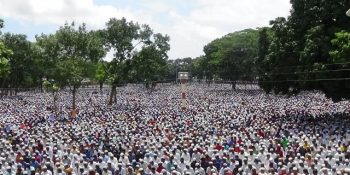 কিশোরগঞ্জ প্রতিনিধি : চার স্তরের নিরাপত্তা ব্যবস্থায় কিশোরগঞ্জের শোলাকিয়া দেশের সবচেয়ে বড় ঈদগাহ ময়দানে ঈদের জামাত অনুষ্ঠিত হয়েছে। প্রতিবারের ন্যায় এবারো লাখো মুসল্লি ঈদের জামাতে অংশগ্রহণ করেন।